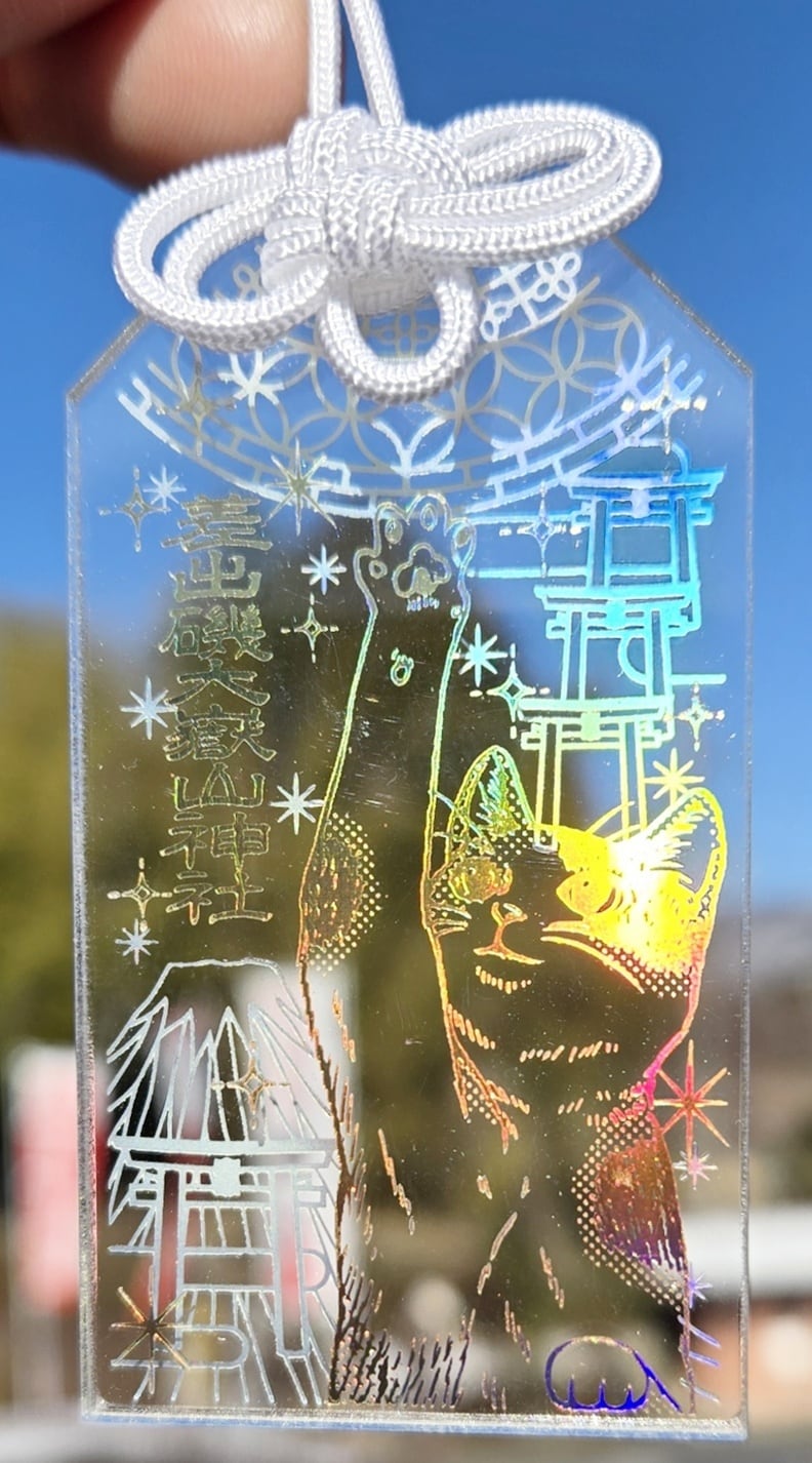 未来を守る力強いお守りです! 猫が描かれた透明なデザインのお守りは、 あなたの願いや夢をしっかりと見守ります。 神秘的な輝きを放つ「未来守」は、 心強い存在となることでしょう。 【サイズ】 縦7cm 横3.8cm
